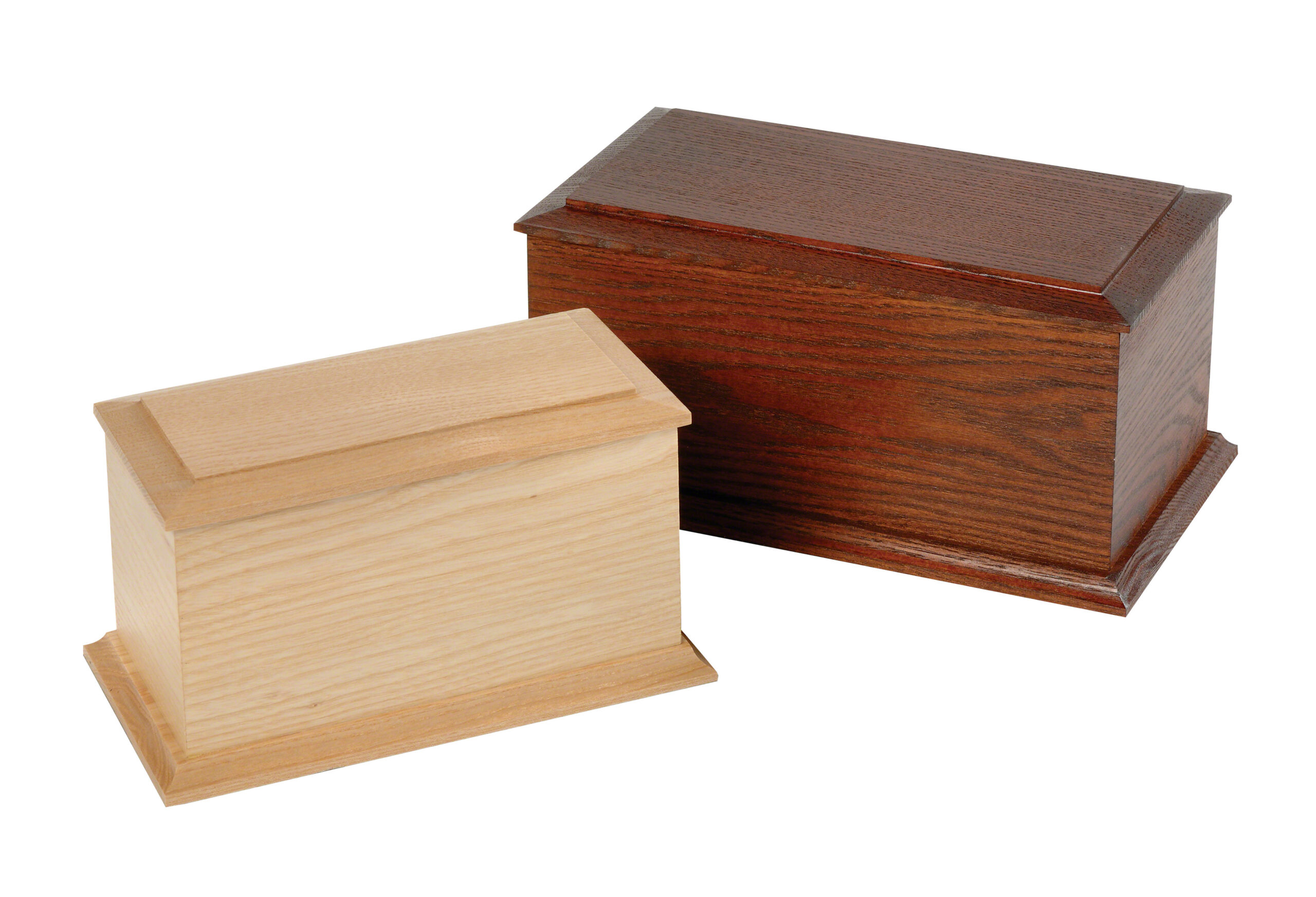 Traditional style solid ash hardwood caskets – square edged mouldings.